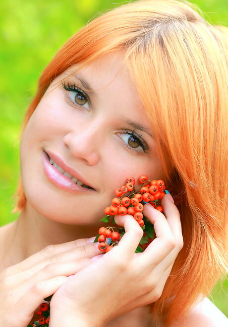 Met Art: 우크라이나어 빨강 머리 십대 비올라 A가 야외에서 큰 가슴과 음모를 전시합니다.