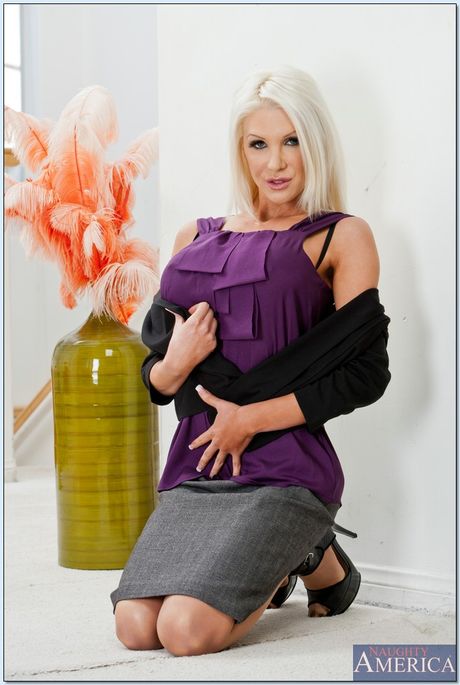 Naughty America: 섹시한 금발 MILF 홀리 프라이스가 스타킹과 하이힐을 벗는다.