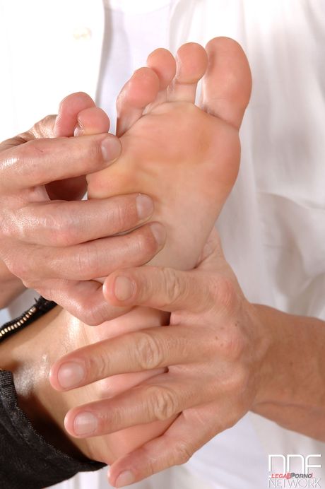 Porn World: 섹시한 헝가리 아비 고양이가 흥분한 안마사에게 발과 음부 마사지를 받고 있습니다.