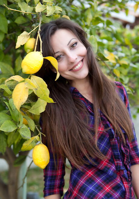 Met Art: 야외에서 작은 가슴과 털이 많은 음부를 드러내는 매끈한 검은 머리의 젊은 로레나 B