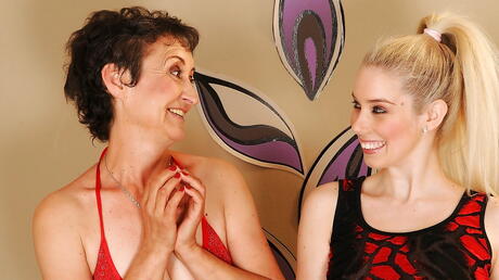 Old Young Lesbian Love: 섹시한 레즈비언 섹스에서 보지를 핥는 매끈한 소녀 마리카와 카트린 울프