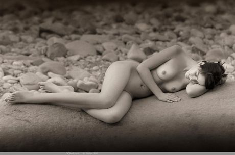 Domai: 마른 금발의 십대 사브리나가 숲에서 누드 포즈를 취하고 작은 가슴을 보여줍니다.