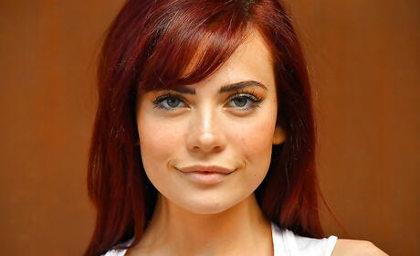 FTV Girls: 작은 가슴을 드러낸 화려한 치마를 입고 야외에서 다리를 벌리고 있는 날씬한 미국인 빨간 머리의 젊은 사비나 루즈