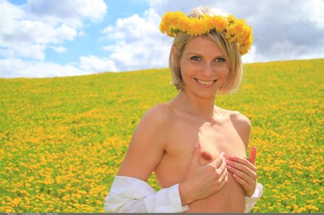 Domai: 날씬한 십대 나스 티야 C는 햇빛 아래서 알몸의 모습을 드러내고 작은 가슴을 보여줍니다.