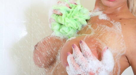 Day With A Pornstar: 속옷 차림의 매우 매력적인 미국 포르노 스타 타냐 제임스, 샤워 중 큰 노커와 질이 드러나는 모습