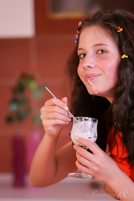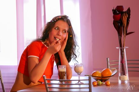 Stunning 18: 18-jarige meid Anoushka E wordt naakt op een aanrecht in de sokken
