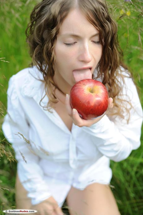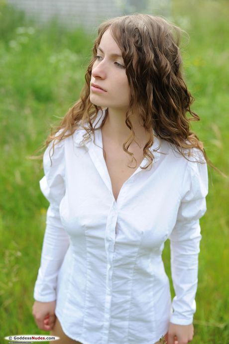 Goddess Nudes: Verleidelijke tiener Ekitti presenteert haar grote tieten en geschoren poesje in een veld