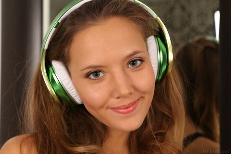 Met Art: Verleidelijke Teen Mango A verwijdert haar koptelefoon en rok om naakt te worden