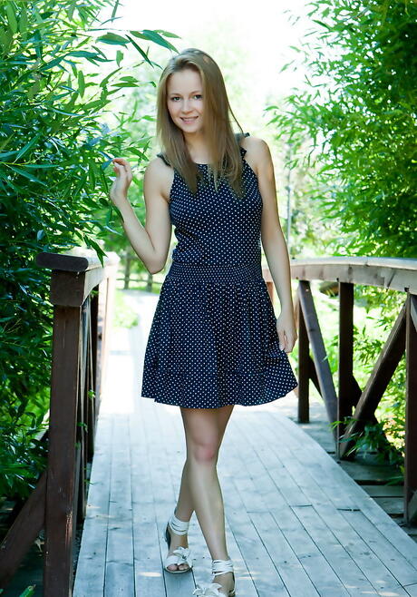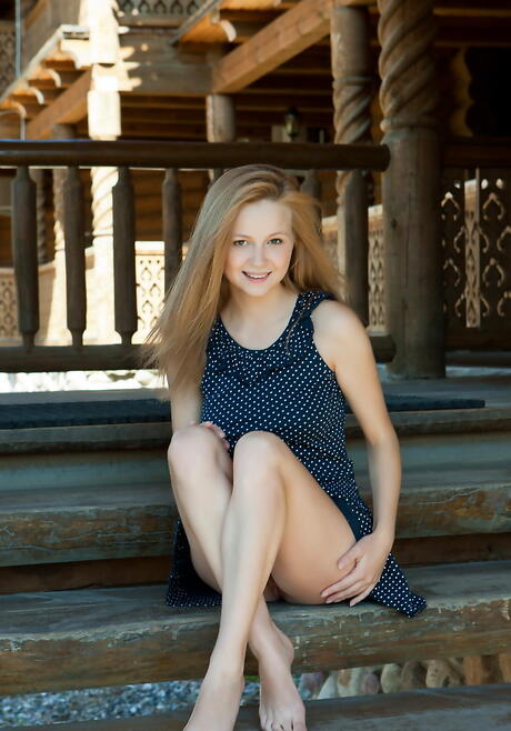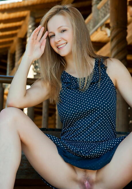 Met Art: Eigenlijke blonde babe Alexandra D toont grote kloppen en harig poesje buiten