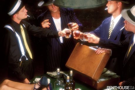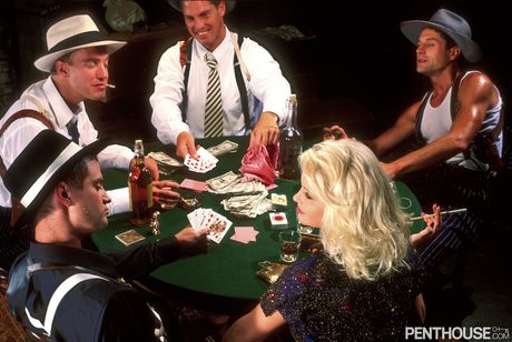 Penthouse Gold: Big Tited Blonde Maya Divine wordt gangbanged door pokerspelers