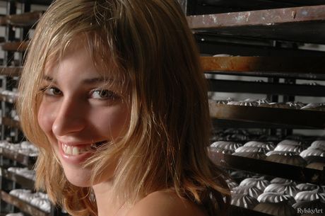 Rylsky Art: Blonde tiener Natalia B bevat een dienblad met snoep terwijl u naakt poseert