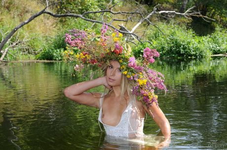 Met Art: Blonde tiener Olga Q ontstaat zichzelf in een rivier