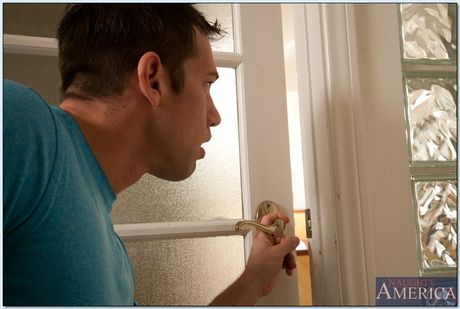 Naughty America: Rondborstige Cougar Lezley Zen krijgt haar doorboorde poesje geramd