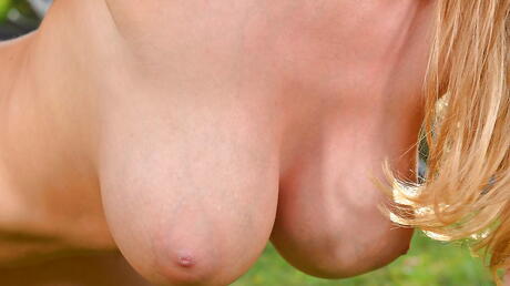 1 By Day: Charmante Britse blonde schatje Danielle Maye ontkent grote borsten en schokt buiten buiten
