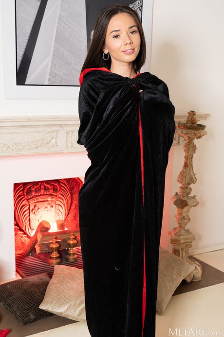 Met Art: Charmante tieneravond zoete verwijdert een cape en lingerie om naakt te worden op rode hakken