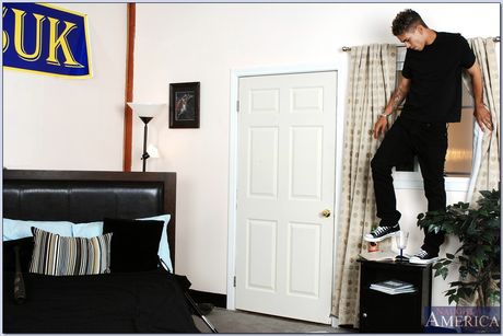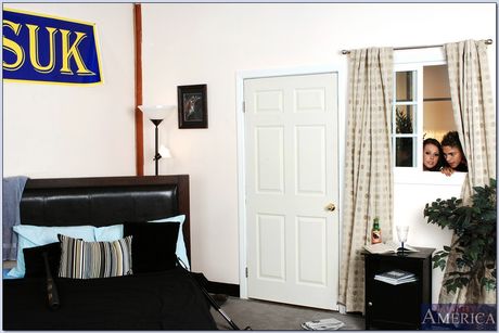 Naughty America: College Girl Penny Flame Strips en toont haar grote kont en tieten