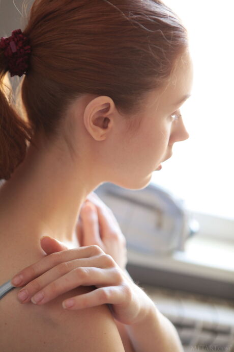Met Art: Heerlijke tiener Riccarda verwijdert haar jurk om naakt op hoge hakken te modelleren