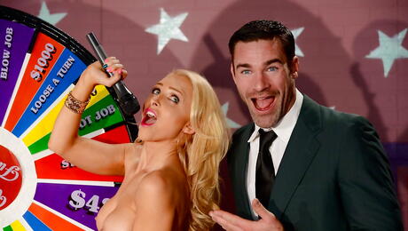 Baby Got Boobs: Uitstekende Amerikaanse blonde Alix Lynx zuigen diepe pik en neemt een sperma -explosie in haar mond