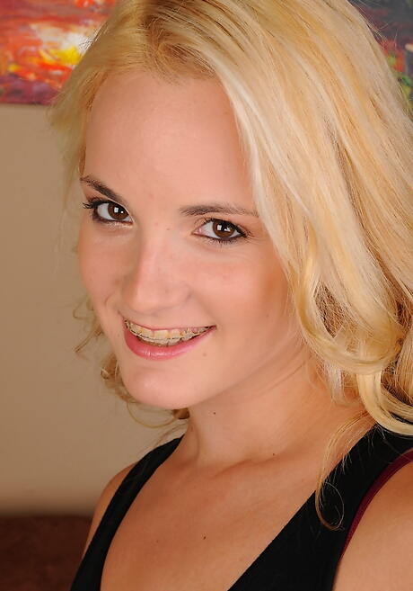 Karups Hometown Amateurs: Gracile American Blonde Teen Sara James onthult kleine tieten en vagina