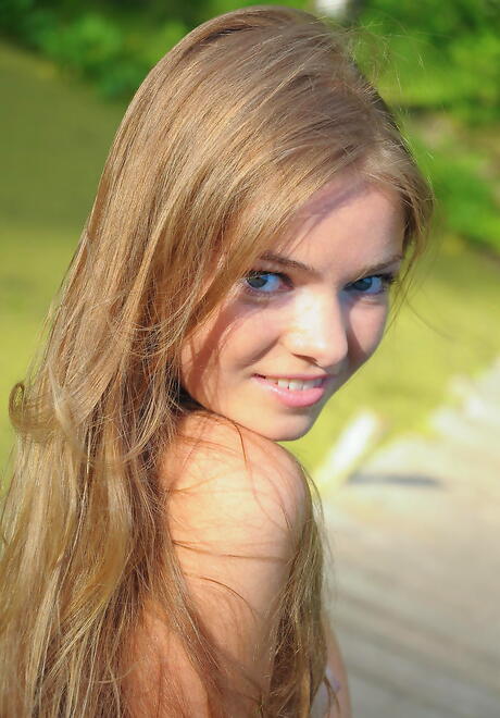 Met Art: Gracile blonde tiener Bridgit A in slipje die kleine tieten en geschoren kutje buiten buigt
