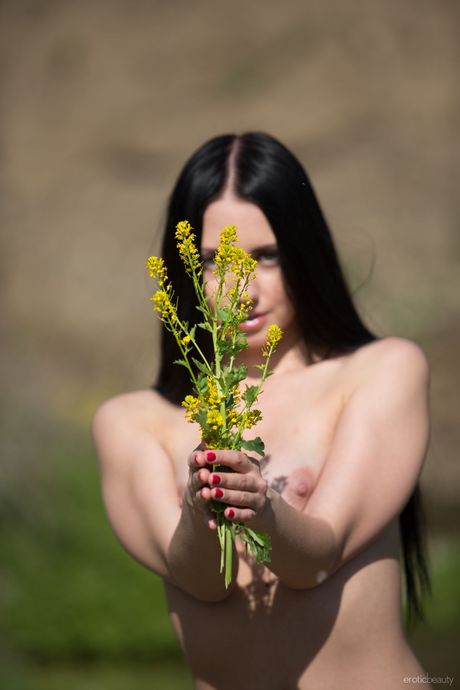Erotic Beauty: Hete tiener Veronica Snezna spaart haar lichaam terwijl ze wilde bloemen plukken