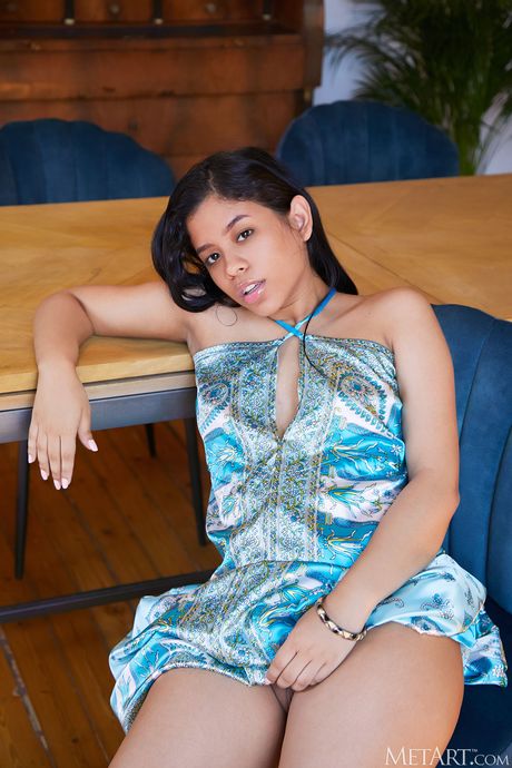 Met Art: Karin Torres verwijdert een zijden jurk om naakt in een keuken te raken