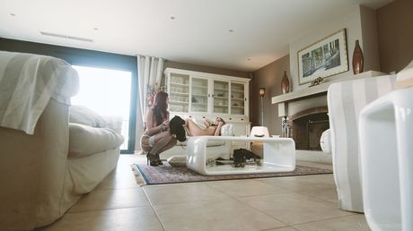 Viv Thomas: Latina lesbiennes Paula Shy & Jimena Lago hebben seks op een bank op hakken