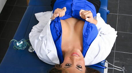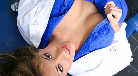 Doctor Adventures: Mooie Amerikaanse babe Trina Michaels in uniform ontkent grote borsten en mietje