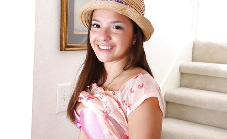 Karups Hometown Amateurs: Luscious American Brunette Teen Veronica Berry onthult grote tieten en kale kut
