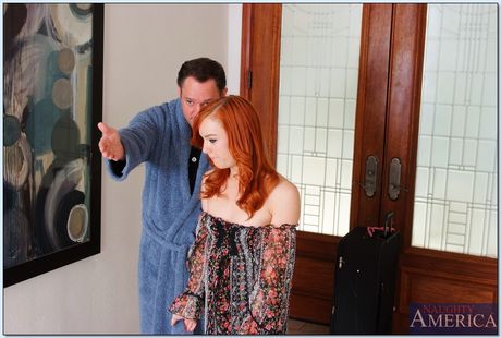 Naughty America: Roodharige tiener Dani Jensen stript en pronkt met haar doorboorde poesje