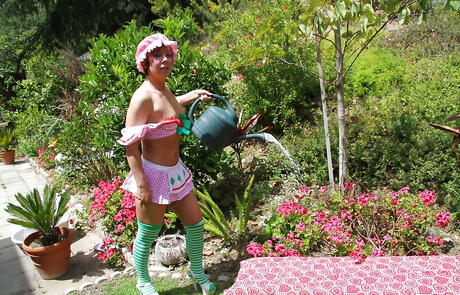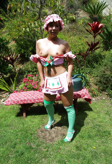 Milk Enema: Sexy Amerikaanse hottie Julie Night in fancy rok bares haar kont en vagina buiten
