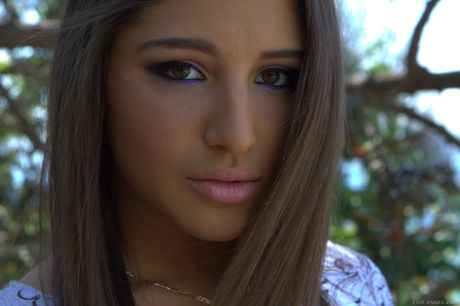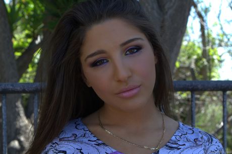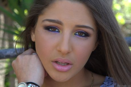 Evil Angel: Sexy babe Abella Danger trekt haar yogabroek uit om naakt in de tuin te modelleren