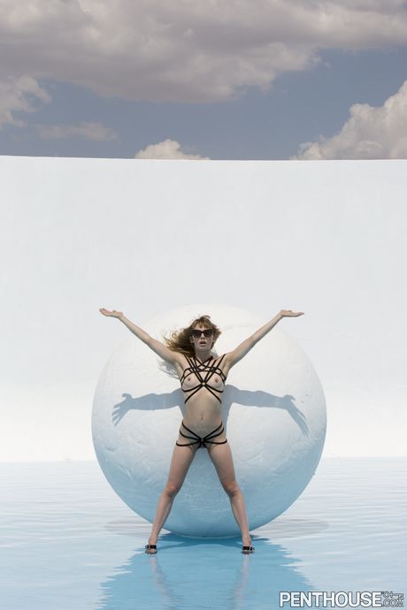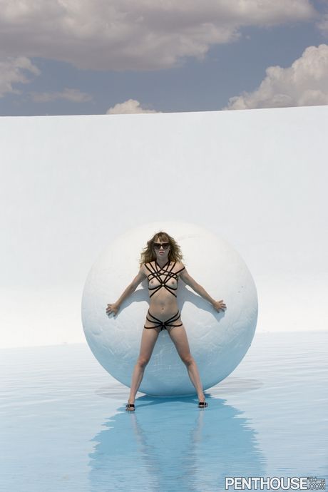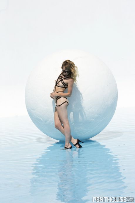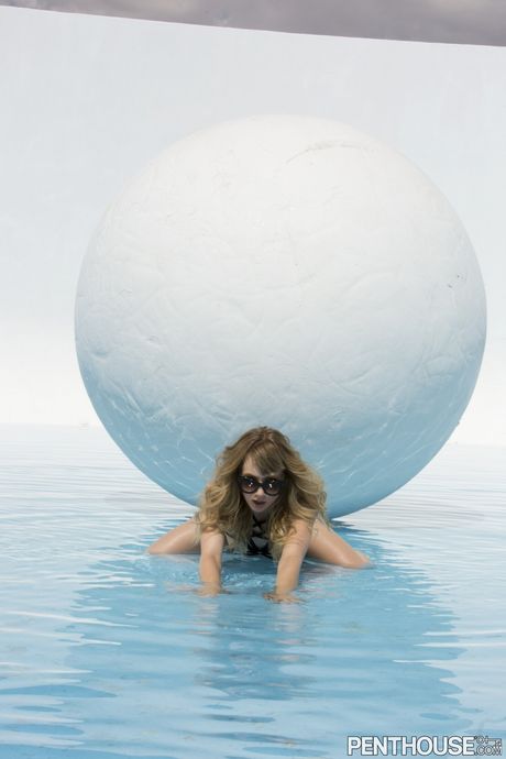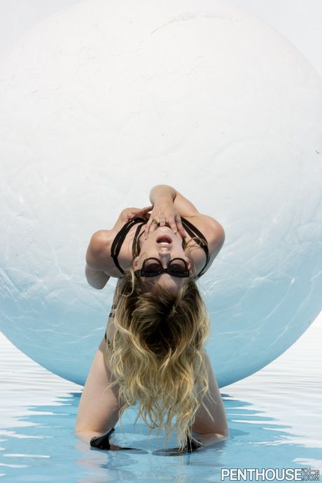 Penthouse Gold: Sexy blonde Ivy Wolfe strips naar haar hakken en bril in het water