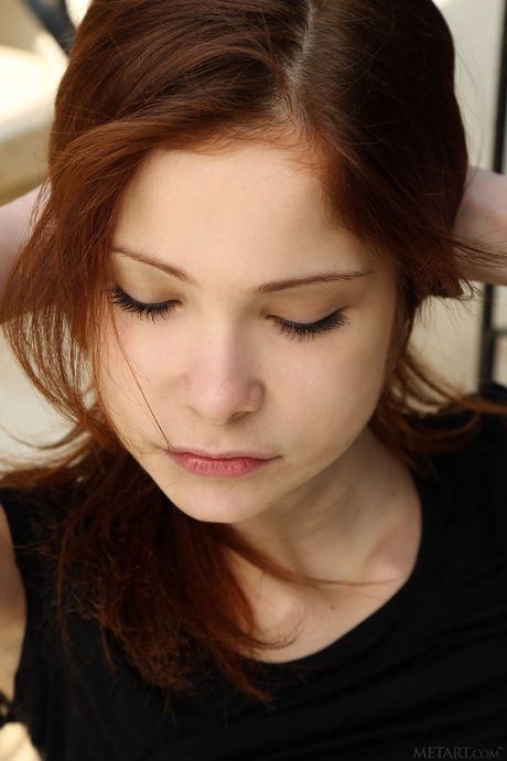 Met Art: Sexy roodharige Emanuelle legt haar kleine tieten en twat in de achtertuin bloot