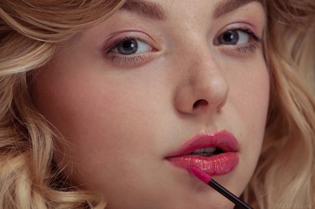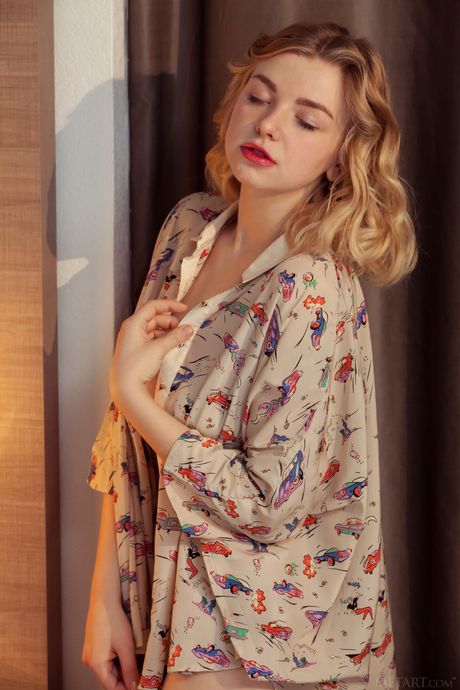 Met Art: Skinny Blonde Daniel Sea verwijdert haar shirt en poseert naakt in de hotelkamer