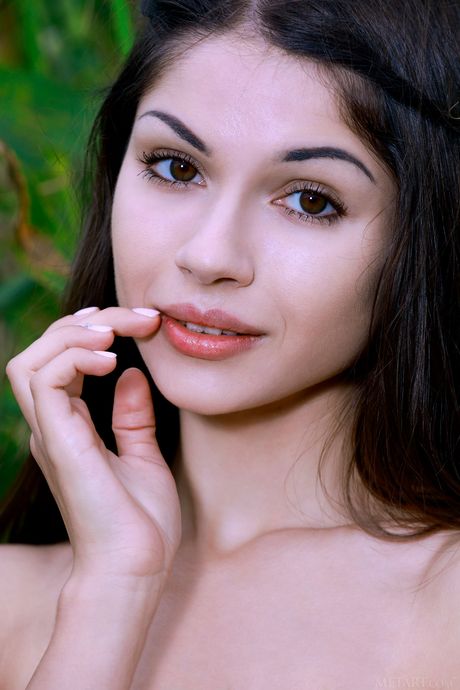 Met Art: Slender Teen Delphina wordt naakt in de jungle terwijl hij een ketting draagt