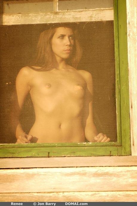 Domai: Slender Teen Renee toont haar kleine tieten en poseert naakt in een solo