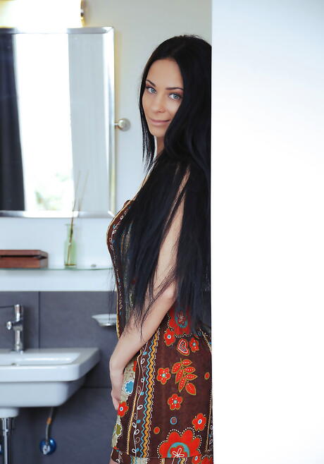 Met Art: Slim donkerharige jonge Lydia een toonaangevende grote tieten en geschoren kutje in de badkamer