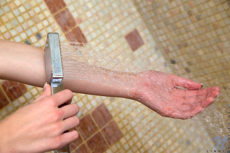 Nubiles: Slim tiener Linny verwijdert haar lingerie voordat ze haar kutje in een badkuip wassen