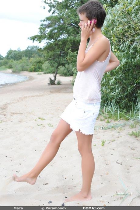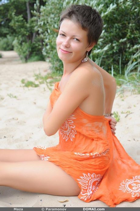 Domai: Solo Girl Maza -modellen in het naakt op een rotsachtig strand
