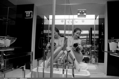 Domai: Solo -meisje met lang haar en een strakke kontmodellen naakt in het naakt