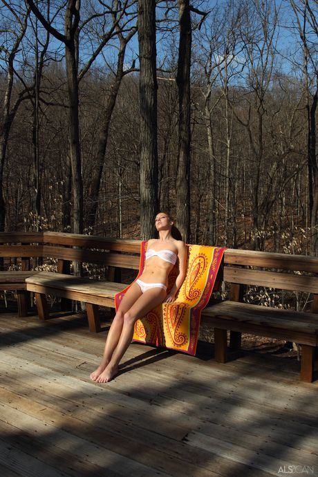 ALS Scan: Sporty tienerblonde strippen en masturberen haar geschoren spleet