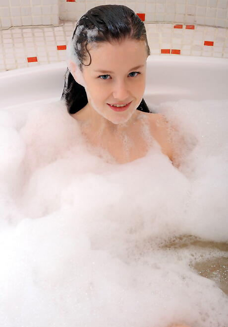 Met Art: Prachtige Oekraïense donkerharige tiener Emily Bloom ontkent grote tieten en verspreidt haar benen in de badkamer