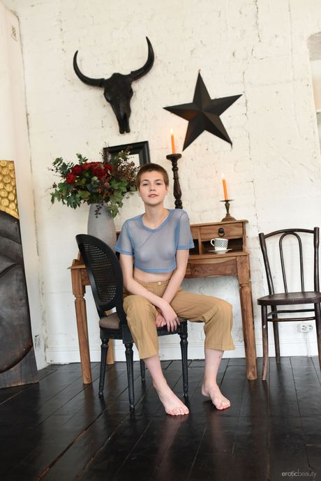 Erotic Beauty: Slanke tiener Jerricka demonstreert haar kleine tieten en poseert naakt