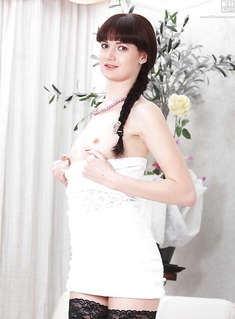 GapeLand: Svelte Young Wendi in hete kousen vertoont grote boobies en schokt weg