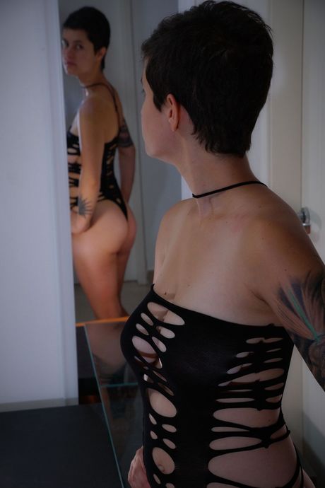 Love Hairy: Getatoeëerde tiener briz dildos haar harige kutje in de badkamer