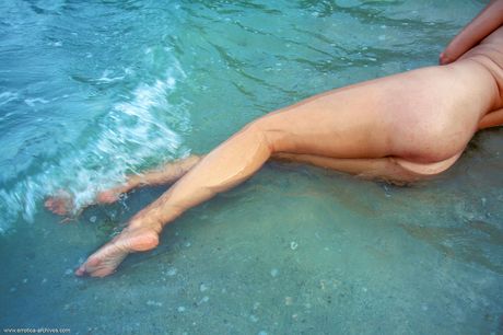 Errotica Archives: Jong meisje Bori Keis modellen volledig naakt op een rotsachtig strand