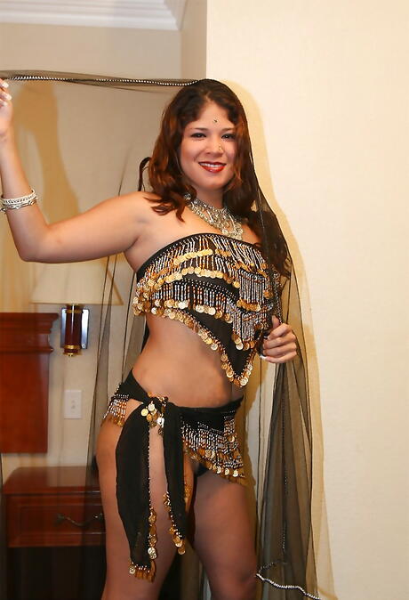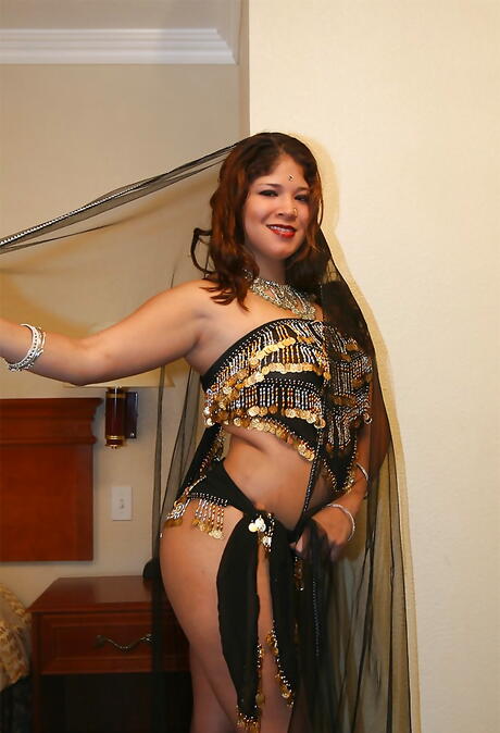 Curry Creampie: Forlokkende indiske BBW Bumikia i cosplay -klær viser rumpa og fitta