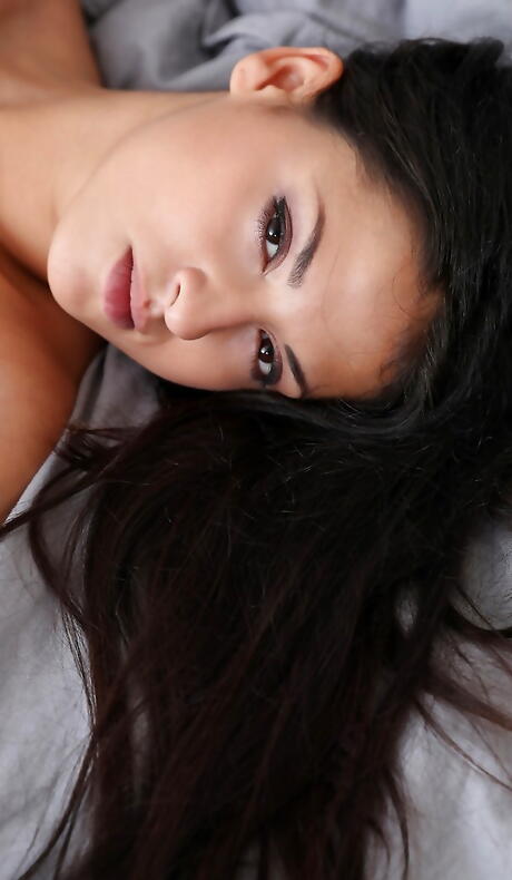 Nubiles Net: Attraktiv serbisk brunette hottie Coco de Mal avslører store bryster og legger et leketøy i fitta