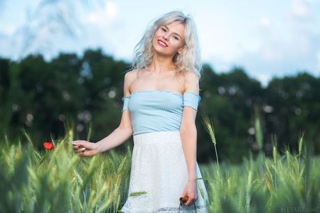 Met Art: Attraktiv tenåring zarina a strips naken i et felt med villblomster og positurer